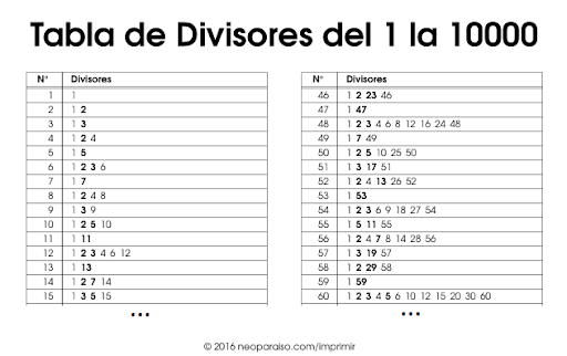 Lista De Divisores Tabla De Divisores De Cada Numero Lista Para Imprimir En Formato Pdf Para Divisores El Plano Cartesiano Mapa Fisico De Espana